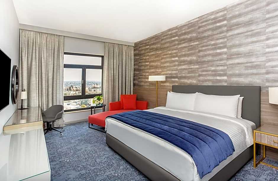 Featuring views over the city, this spacious room has a mini-bar, a safe and ironing facilities. Tea and coffee making facilities are also provided. The marble bathroom has a hairdryer, bathrobes, slippers and a weight scale.